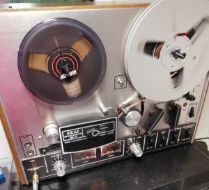 Je suis tombé sur une bande pour magnétophone (non, non, pas une cassette, une bande magnétique !) qui dormait dans un carton depuis … presque 35 ans. Comme je n’avais rien pour l’écouter, j’ai trouvé un magnétophone à bande de bonne facture sur « le bon coin », pour un prix tout à fait raisonnable.